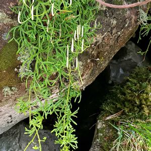 アスヒカズラ(明日檜葛) ヒカゲノカズラ科アスヒカズラ属の 常緑シダ植物(常緑多年草) 分布 北海道、本州(中部地方以北・滋賀県・兵庫県・鳥取県)、四国地方(徳島県) 山地帯から高山帯の樹林下、日当たりのよい明るい林縁に生育 風穴から涼しい空気が吹いてくる場所に生えていました。 ちょっと見、ヒカゲノカズラに似ていますが、茎や葉が扁平なところが違っていました。