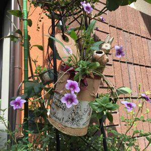 昔作ったリメイク缶 ここに植えていた多肉さんは一種類だけになり、ここは今やあちこち出没しているすみれの夕霧さんが気持ちよさそうに占拠して😃💜