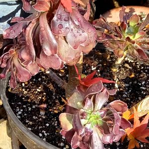室内管理していた黒法師。 耐寒性があるみたいなので、お庭へ! 紅葉シーズンらしくお隣の紅葉が🍁