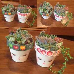 昨日は「富士宮多肉祭り」に行ってきました🤗 miyuさんの鉢を3つお迎え出来たので、早速植えてみたよ! お顔鉢にはパクさん苗の「ウッティモ」・「プリマヴェーラ」を。 花柄鉢は寄せ植えにしたよ٩(ˊᗜˋ*)و♪ 鉢がカワイイとテンション上がる⤴︎︎︎⤴︎︎⤴︎︎︎♥️