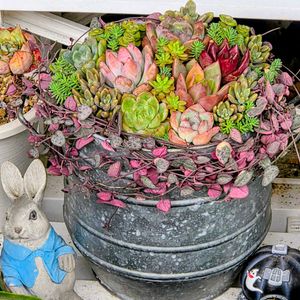 こんばんは😃🌃 🏷️トトロの日 🏷️クジラの日 🏷️祭りじゃピック ※千日紅ラブラブラブが咲いて癒されています💗 ※春のイベントでお迎えした麦わら帽子型鉢寄せ植え可愛い💠です 以前イベントでひょうたんランプWS参加して作った強面のトトロチャンも一緒に仲良く... お気に入りのみたりんさんのトトロボードも一緒にルンルン🎵 ※まつぴよさんのモアイ鉢🗿も一緒に仲良く... ※クジラ鉢🐳のミニサボテン🌵ハオルチアお気に入りです… 以前イベントWSでクジラ鉢🐳寄せ植えに参加した親子クジラ🐳チャンです お気に入りです😉 繋がりに感謝です☺