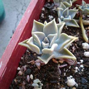 エケベリア、うちに来るとみんな下葉がどんどん枯れてしまいます😨 この子も、前に載せた白牡丹さんのようにどんどん葉っぱ落ちてダメになっちゃったらどうしよう😱 うちに来て植え替えしたのが数日前なので、水やりなんかしてないし、直射日光にもなるべく当てないようにしてて、大事にしてるのに。 私、エケベリアのお世話の仕方間違ってるのかな😭