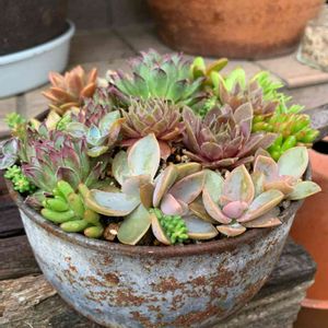 先日の多肉寄植え大会の私の作品🪴 実家にあった古い墨おこし?を鉢にしました。再利用できるものを探し出して、あれこれ考えるのもまた楽しい♪♪♪