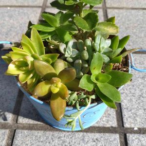 赤ちゃん達の残りを適当に詰め詰め 昔作った ヒビ入りの蚊取り線香ホルダーに植えました😅 これでも初めての寄植え 充分満足😋