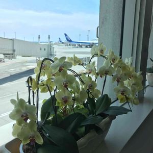 那覇空港✈️より、黄色い胡蝶蘭🌼 那覇空港のロビーや通路では、たくさんの胡蝶蘭が 出迎えてくれました(o^^o)オジャマシマ-ス この日の最高気温22℃。 街では半袖の人も見掛けますが、長袖が安心な気候です🌸^ ^ 2020.2.20 沖縄旅
