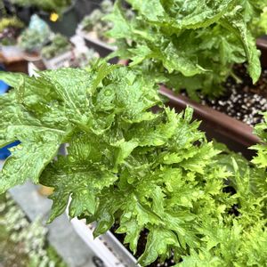 激安わさび菜苗4株を植えて、 🔰でもプランターで短期間で簡単に収穫できたヾ(●︎´∇︎`●︎)ノ 6月に董立ちが目立ち、新芽にアブラムシ付着しだして葉が成長しなくなったので、終了。 味は、想像してたのより薄かった(^◇^;) サラダより炒めたほうが味が際立つ。