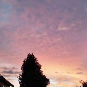 おはようございます🙋 家の前から見た、日の出前の朝焼け🌄 大きな木はモクレンかコブシ? また忘れてしまった😅 今日も良い一日をお過ごし下さい💕🍀💮💪👋