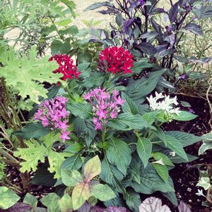 今日は連投。 昨日のヒューケラ後方に、ペンタス混色と、紫の唐辛子。 唐辛子の葉色が美しくて… この花壇はリーフの花壇になりそうな予感。