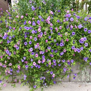 何度目かのPWさんのトレニアブルーリバーとピンクリバー。 ついに高さ60cmの花壇から地面に到達しました…❣️ ピンク1株とブルー2株でここまでのボリュームに… PWさん…神です…(๑˃̵ᴗ˂̵) 玄関前を華やかに彩る可愛子ちゃん、来年も絶対に植えます!