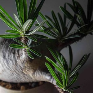 マダガスカル代表塊根植物 パキポディウム・ロスラーツムver.グラキリス 通称グラキリス 発根管理 失敗編❶ 夏の終わりに輸入株として根なし状態で農家さんに入った株。 幹肌が特にツルっとしていて一目惚れでお迎えして 秋にはゆっくりと葉が芽吹き、冬に突入。 ヒーター&ライトあてて引き続き発根管理をしていましたがお隣さんと比べても一向に葉が茂らずマイペースな子なのかな。くらいに思っていました。 が、何気なく幹の張りを確かめているとべコっ......(;・∀・)あっ