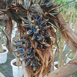 絵の具で塗ったような紺碧のタネ、真っ青!この南国の巨木を盆栽仕立てに育てたいけど、デカくなっちゃったら困るわぁ