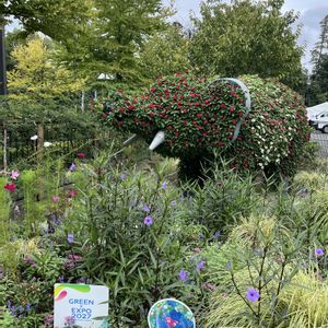 今年もはじまりました 横浜ガーデンネックレス🪴 毎回行っている里山ガーデンへ 初日この天気で10時すぎに到着 空いている…♫ ウェルカムガーデンベアも待ちなしで何枚でも写真が撮れる😍 天気予報では気温の数字だけで 涼しい、を連発してますが来ていた人たち口々に「暑いね💦」と言っていました 今回のテーマ 夕焼け色の丘🌅 とのことで、コスモス多めかな。 いろんな種類のコスモスを一度に楽しめました😊 そしてイベントで寄植えをやっていて講師に三上さんがおられて、人がいないのをいいことに、勇気を出して写真一緒に撮っていただきました☺️ サルビアはこれから咲くようだし、コスモスも蕾もまだあったのでしばらくしたらまた行こうと思います🏵️ 街づくり基金に募金して花図鑑をいただき、アンケートして栽培キットいただき(先着順)満足して帰ってきました😆