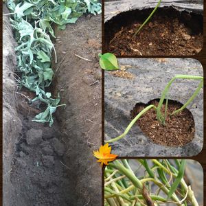 葉葱を買ったら根がついていたので 料理👩🍳へ使いながら害虫対策にしよう 菜園の虫に食べられ🕳穴ぽこになった白菜🥬オレンジミニの傍へ 埋め込みました 一応コンパニオンプランツだね 2025.11-53