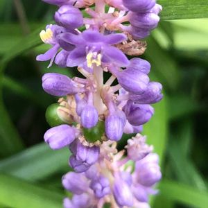 今日、お出かけ先で。💜ྀི💜 💜ྀི💜 ヤブランが可愛いです。♬ ⋆꙳𓄸 ♪ ( ง*ˊᗜˋ*)ว ♪ 𓄸꙳⋆ ︎ ♬(*˙︶˙*)ノ"💕💕 🏷️ 彩月(いろどりづき)の青い花2025.。