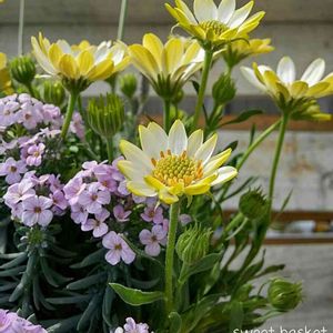 こんばんわぁ\(* ¨̮*)/\(*¨̮ *)/ 20日に投稿した寄せ植えに入ってるキララちゃん(*^^*)💡 ぷくりんさんの前からも見たいというご要望にお応えして、キララちゃんの投稿します〰❤ リバーシブルで、表が白、裏が黄色のお花が可愛い❤ ぷくりんさん、見てくれるかな🎵