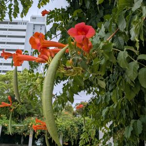 凄い実。 ①ノウゼンカズラ ノウゼンカズラ科 ノウゼンカズラ属 象の鼻のように。 ②トウカエデ ムクロジ科 カエデ属 7月にも挙げたのですが、こんなにワサワサ付いているのを見て。 ①は近所の児童公園のノウゼンカズラ棚で。 ②は服部緑地から駅までの緑道で。