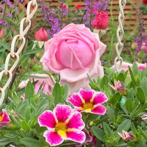 ラ 、フランスと共に🌸 冬越ししたカリブラコア ラ フランスに見守られて 可愛く咲き始まりました😊