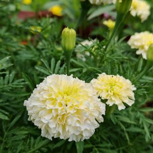 噴水広場 淡い感じのマリーゴールド ジニア ハツユキカズラ バーベナ