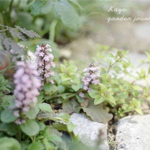ピンクのアジュガとその右側に生えている雑草😂すぐ名前をわすれちゃうんだけど、たしかトウバナ??? 地味〜に可愛いので全部草むしりせず、少しのこしております💓