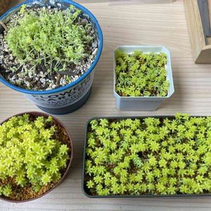 おはようございます〜😊 セダムのゴールデンカーペットがモリモリに育って密になっていたので、夏に備えて、1/3を株分けにして、後は思い切りカット✂️しました!結構バッサリ✂️しちゃったので、ちょっと心配ですが、復活してくれると信じよう❗️😄 カットした子たちは、チマチマ植えたのですが、次回はもっとまとめて植えようかな。 多肉さんを育て始めて2回目の夏、上手く乗り切りたいです❗️🤣 何か良いアドバイスあったらヨロシクお願いします!(๑•ᴗ•๑)♡