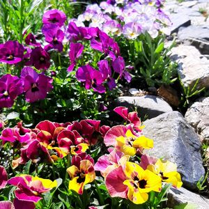 玄関横、給湯器壁面~😊 お花がいっぱいになりました💓💓 デージー、ビオラ💛、ネメシア、花かんざしなど、 昨年からのクレマチスが あがって来たので、 お花💜楽しみにしていたのに、 この後、元気がなくなり、 5日ぐらい原因はわからず😢💧 土の辺りから新芽が見えたので、 思いきって、✂️しました。 この後の成長に期待です~😊💓