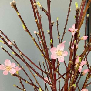 馴染みのお店(スーパー。通称トレジョ)で桃の枝を買いました。蕾がたくさん付いていて、開花が待ち遠しいです。つづく