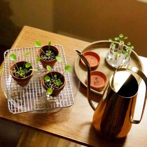 ピレアの水やり。網とトレイを使って水切りしてます🌱