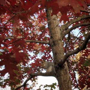 真っ赤に紅葉した葉っぱを眺めていたら、リスさんがいました。🐿🍁 ニューヨークのリスは人に慣れているのでたまに近寄ってきたりして、ドキドキします😂
