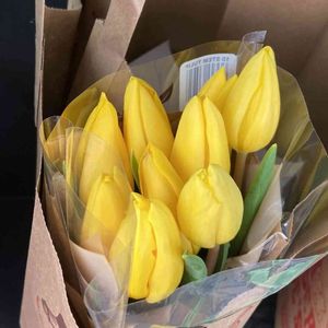 今日は、買い出しの日。先週は赤い花だったので、今回は黄色いチューリップ。春はもう数ヶ月先に来る予定です。外に咲くチューリップは光や気温に合わせて開閉するのですが、切花は、それができないのが悲しいです。