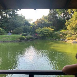 ブルックリン植物園 噴水に映る緑と快晴の空☺️