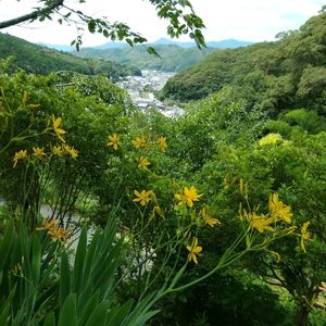 お早うございます。 ヒオウギ 牧野公園山道から佐川の町を 見た景色です。ヒオウギが 綺麗でした。💓 牧野公園は佐川城跡地に 山全体が植物公園になって います。植物分類学者で著名な 牧野富太郎博士の生誕地です。 そこそこに牧野博士の お墓があるのに驚きました。 本当に尊敬され慕われた方 なのだと感銘を受けました。😌