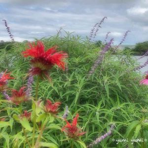 今日のお花〜モナルダ〜 7月4日に訪れた山口県宇部市 ときわ湖畔に咲いていました♪ GSホーム画の少し右側です♫ 我が家のモナルダは6月にはお花が咲くので今は切り戻して草丈30cmあまりです 今日は風があって風鈴が心地よく鳴ってます♪ でも実際はとっても暑いですね( ˊᵕˋ ;)💦