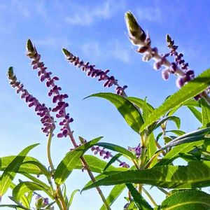 まだ咲いてます💜 ススキのようになびくように咲く姿イイですね。サルビアレウカンサとも呼ぶそうです。