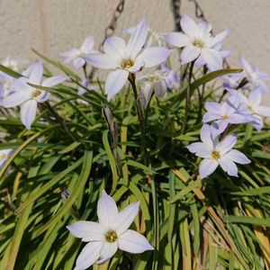 ハナニラも満開です❤️ こちらはハンギングで、チューリップ、ムスカリなども一緒に植えたのですが…葉っぱばかり繁って…生えてくるかな?💦