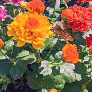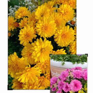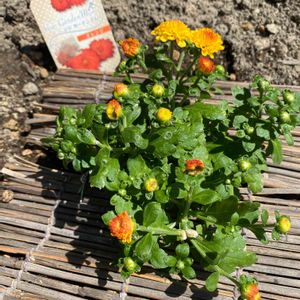 こんにちわ。◕‿◕。 今日も良いお天気☀ ガーデンマム、ミックスを鉢植えしました🧡💛💓