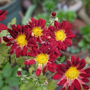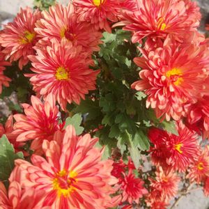 去年買ったガーデンマム🌸 もうちょっとオレンジっぽい色だった様な気がします。 綺麗に咲き揃わず、これが限界です💦 でも、今年も咲いてくれたので良しとします😊