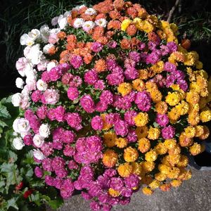 祖母宅の玄関前にあったガーデンマム。 色とりどりで華やかです