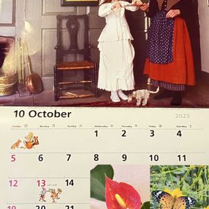 10月のターシャテューダーの暦と観葉植物たち アンスリウムが2階で花を咲かせてきました❗️ 今月も富士山や植物共々よろしくお願いします