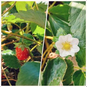 ベランダに出ると甘い香り…… 見ると小さな苺たち。 いじらしいので摘み取らずこのままに。 春にまた咲いてね☺️ #秋いちご