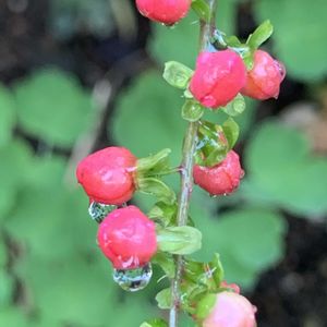 ジュズサンゴ❤️ 大雨☔️の後 💧が可愛い って 毎年投稿してます🥶 ②赤くなる前の白い実🤍 初めて見ました ③赤いジャズサンゴは 低く広がっていき お花もたくさん咲く ④⑤ 黄色のジュズサンゴ💛 高く茎が伸びて 花も少なく 実はまだ見れない 足元には 斑入りも😄 結果 赤のジュズサンゴが 育てやすいのかなあ〜と 思ってます🤭