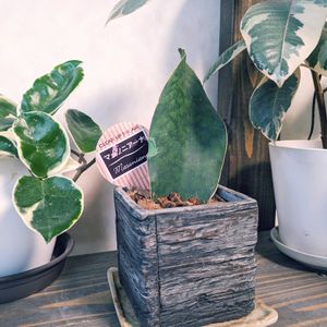 サンスベリア マッソニアーナ 株分けして、お裾分け。 エバーフレッシュ とセントポーリアと一緒に、お客様をお出迎え😊