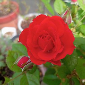 何度も同じ花ですみません💦。昨日撮っておいたミニバラのアップです📸。今日は雨で軒下に退避中。 先に咲いた蕾を切るべきか🤔。とりあえずこのままにしてます。 黒星っぽいのでベニカをスプレーしました😌 今日は仕事の昼休みにホームセンターに走って、新しくお迎えするミニバラの鉢を調達←ダリアで全部使ったので無くなりました😅。妄想しながら着々と準備進めてます😆