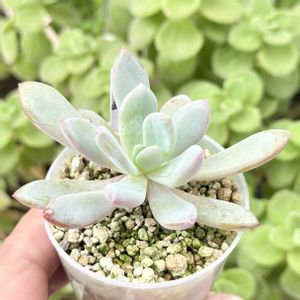 繁殖用の苗が続きます。 グラプトベリア『秋の霜』です。 カクト·ロコで販売しているらしいけど…なかなか見付けられず^^; うちの近くではカクト·ロコ苗自体が今秋はほとんど入荷無し状態^^; この子はメルカリでポチりました。 エケベリアと多く言われていますが…カクト·ロコの札にはグラプトベリアと表記されています。 実際、長い葉を見ればエケベリアではなくグラプトベリアの方が信憑性がある事が分かります。 昔はエケベリアだったけど現在はグラプトベリアに変わっている可能性もありますね。(そこまでは確認していないけど(^^ゞ) グラプトペタルム『秀麗』に似ているか? エケベリア『立田』に似ているか? エケベリアとも、グラプトベリアとも、どちらともとらえる事が出来ますね^^; 詳細不明で原種か交配種かも分からないから…迷宮入りの可能性も^^;