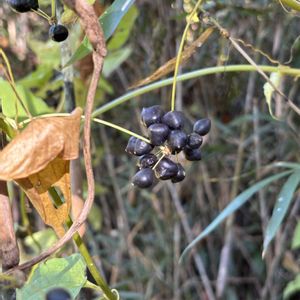 トガリシオデの実が色づき始めたのを見たのは10月25日だったけど、あれから行けずにいました。 今日やっと行ってみたら・・ 黒くなったのを通り越してちょっとシワシワになったのもあり〜 葉っぱはもう枯れてるのがほとんど もう少し早く来れた方が良かったな。 でも、遅くなったけど間に合ってよかった。 来年は花が咲く頃から見てみたいね(>◡<)♪