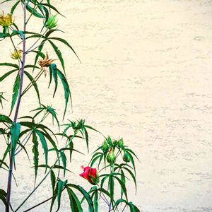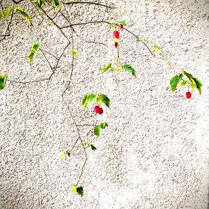 強い照り返しの黄昏時 嵯峨野あたりで、 教会の大理石を背に 草の緑、花の赤 和の雅、若冲に倣う 【再投稿】 撮影2018年7月 投稿2019年7月