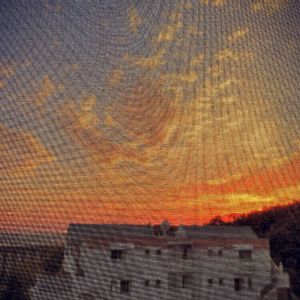 大規模修繕工事 ベランダからの眺めは 黒い紗幕越しにみえる 夕暮れ時 心が動き一枚 まるで印象派絵画のようなタッチに