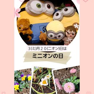 3月20日は、ミニオンの日(公式) 2月に行ったUSJ🤳したミニオンです 庭の花とコラージュしました 🏷️ミニオンの日 🏷️コラージュして遊ぼ♡🏷️コラージュ仲間達 🏷️一般ジーの会♪🏷️ビオラ・パンジー祭り♪ 🏷️木曜日は桃色🏷️乙女ピンク 色々参加させて頂きます