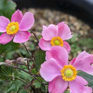 矮性の秋明菊が、咲きました! 今年も酷暑で、枯れてたり、葉焼けしたり、可哀想でした🥲 10月に入って やっと 涼しくなり、 我が家の花達も、元気が出来てきたようです😊