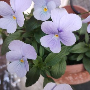 ヘブンリーブルーのこぼれ種からのビオラ 限りなく白に近いブルーです めっちゃ好きな色形♡