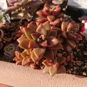 今日はグラプト系の仲間で 🏷ド真ん中の日 参加します🤗🎶 簡単に増える子たちだけど、 並べるとキレイ〜😍✨ グラプトベリア属は、 ↖ゴースティン →白牡丹 ↙初恋 そのほかは、グラプトペタルム属。 グラプトベリアは、グラプトペタルムと エケベリアの交配だから、 よりロゼットが細かくて花っぽいか と言えばそうでもないような🙄❓ 小さい子から大きな子まで、 種類がいっぱいあるのね。 姫秋麗と朧月、犬で例えると チワワとラブラドールくらい違うかも🤭 いや、もっとかな😆